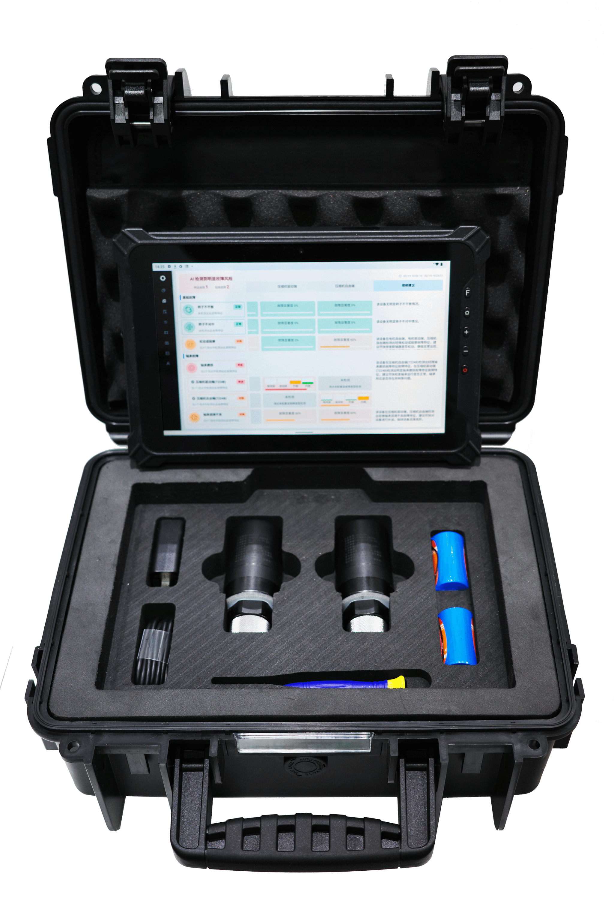 简介:IMS-D-PAD多功能智能分析诊断仪是适用于工业设备点巡检、故障诊断等设备运维应用场景的智能化工具套装,多功能智能诊断分析仪以手提工具箱的形式集成,箱内包含防爆手机/平板1部、无线智能诊断仪2台、马蹄形磁座2个、平面磁座2个、备用电池组件2个及各类配件,可适用于各类复杂工业场景。用户可通过将无线数采器磁吸安装在需点巡检的设备上,采集设备的三轴振动和温度数据,在APP端即可实时读取设备各特征参数及波形频谱图,并传输到云平台。...