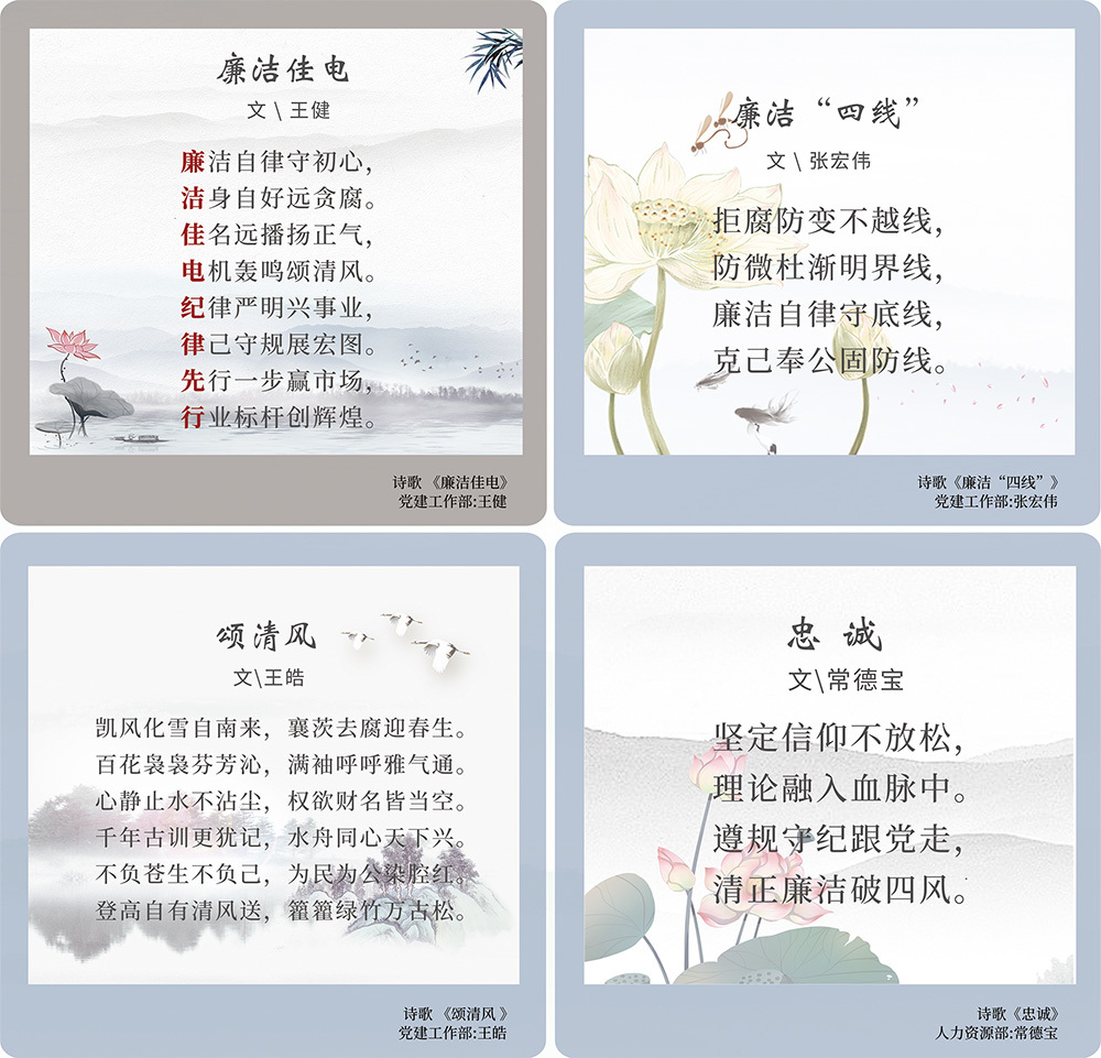 此次活动从征集到成功展出得到了公司各直属党组织和广大党员干部职工的积极响应和踊跃参与,共征集书法、绘画、诗词、摄影、手工、微视频等各类作品83件(个),作品紧扣“清廉”主题,创作新颖、寓意深刻,展现出浓厚的廉洁文化氛围。