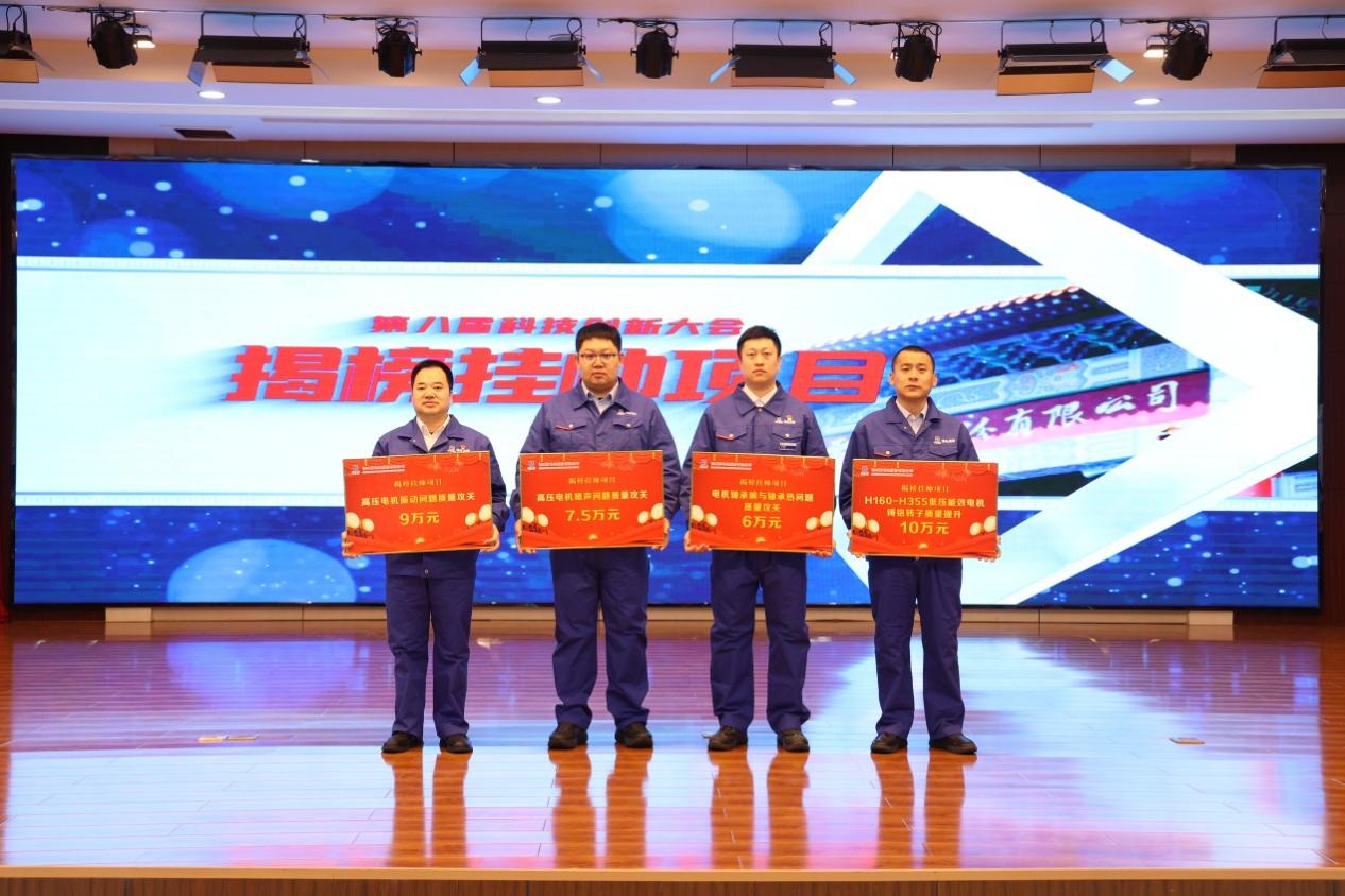 3月16日,哈电集团佳木斯电机股份有限公司(以下简称“2138cn太阳集团城”)隆重召开第八届科技创新大会,对公司2023年度在科技工作上做出突出贡献的集体和个人进行了表彰奖励。获奖代表对重大科技项目做了情况介绍与经验分享。2138cn太阳集团城副总经理潘波做年度科技工作报告。哈电集团党委常委、副总经理,公司董事长刘清勇出席会议并讲话。2138cn太阳集团城党委书记、总经理刘汉成主持会议,并与第二批揭榜挂帅项目负责人代表签订了项目目标责任状。2138cn太阳集团城领导班子成员出席会议,有关单位中层领导人员及技术战线全体科技人员参加会议。