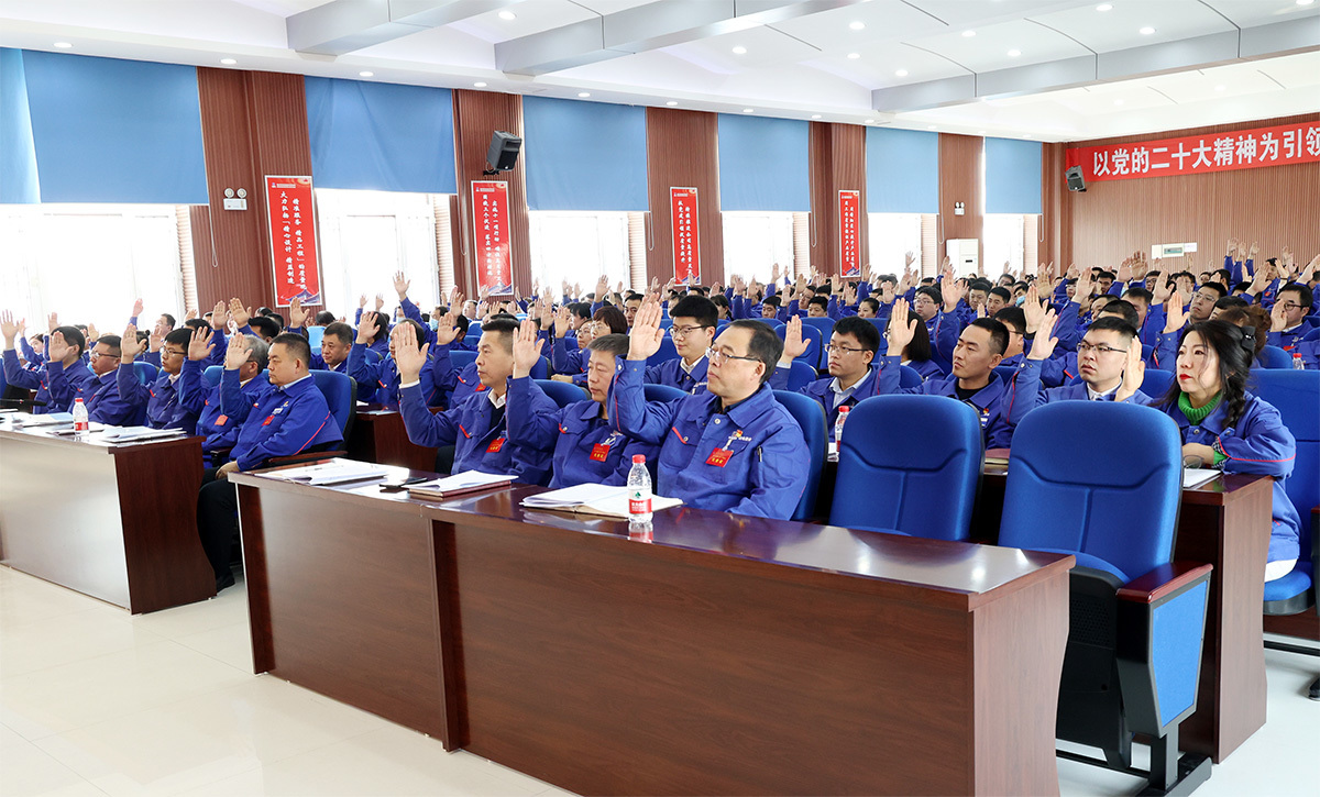 会上,传达了《哈电集团第二届一次职工代表大会暨2024年度工作会议精神》,宣读了表彰决定,党委书记、总经理刘汉成作了题为《守正笃实 久久为功 奋力谱写2138cn太阳集团城高质量发展新华章》的工作报告,党委副书记、工会主席刘亨主持会议。