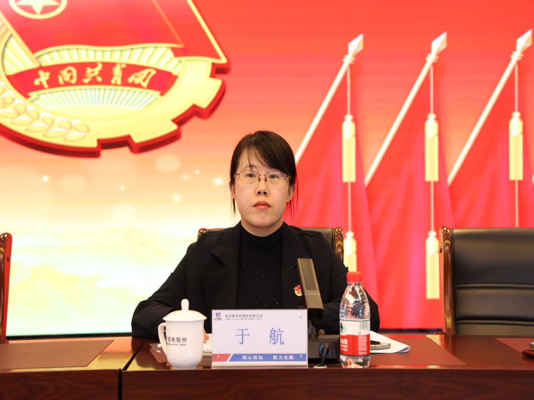 杨姗姗同志作了题为《高举团旗跟党走 踔厉奋发新征程 为建设世界一流特种电机制造和服务企业贡献青春力量》的报告
