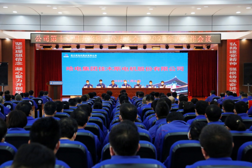 1月8日,哈尔滨电气集团佳木斯电机股份有限公司(佳木斯电机厂有限责任公司)召开了第十九届五次职工代表大会暨2023年度工作会议。大会以习近平新时代中国特色社会主义思想为指导,深入学习宣传贯彻党的二十大精神,贯彻落实哈电集团党委一届七次全会和哈电集团一届五次职代会精神,表彰先进,全面总结2022年度工作,分析研判公司当前面临的形势,安排部署2023年重点工作,凝聚发展共识,奋力开启2138cn太阳集团城高质量发展新征程。会议由2138cn太阳集团城党委副书记、工会主席刘汉成主持。2138cn太阳集团城领导班子成员及201名职工代表参加会议。