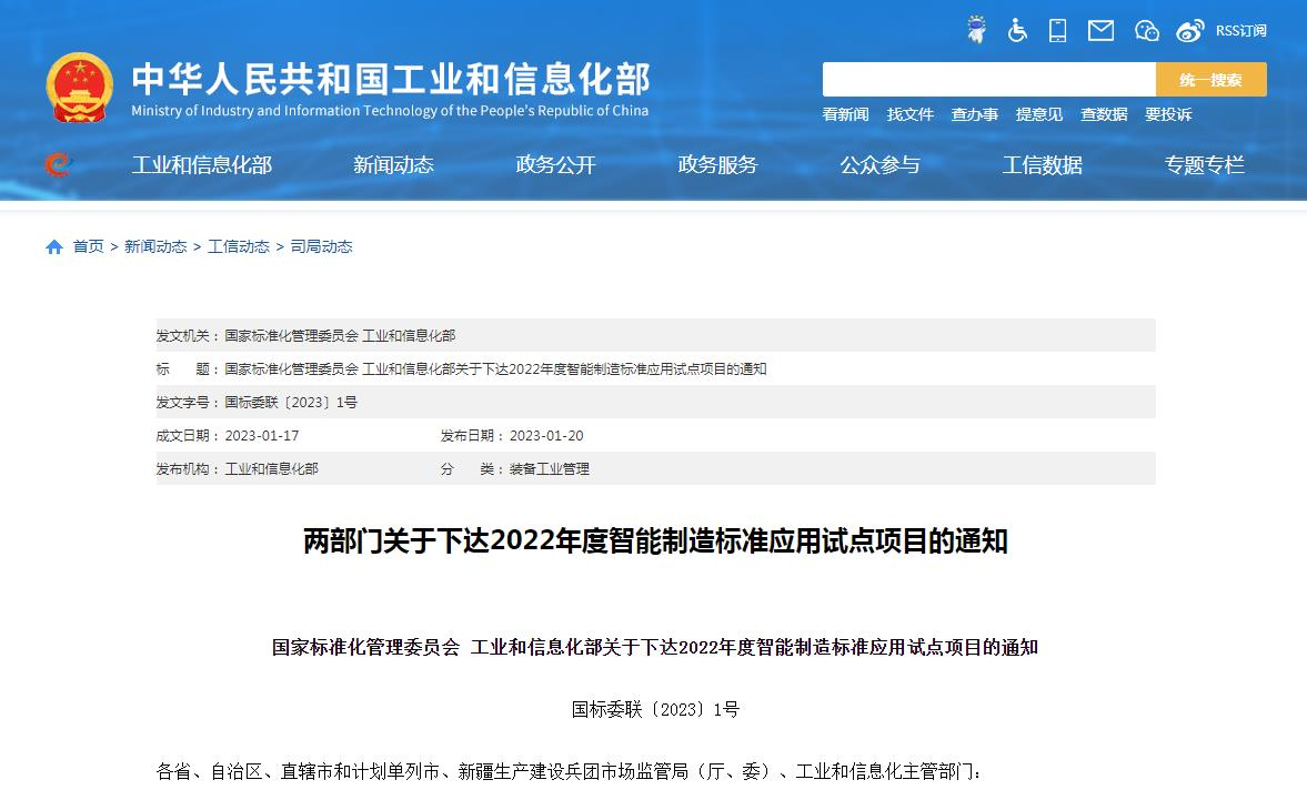近日,国家标准化管理委员会、工业和信息化部公布了国家智能制造标准应用试点项目名单。