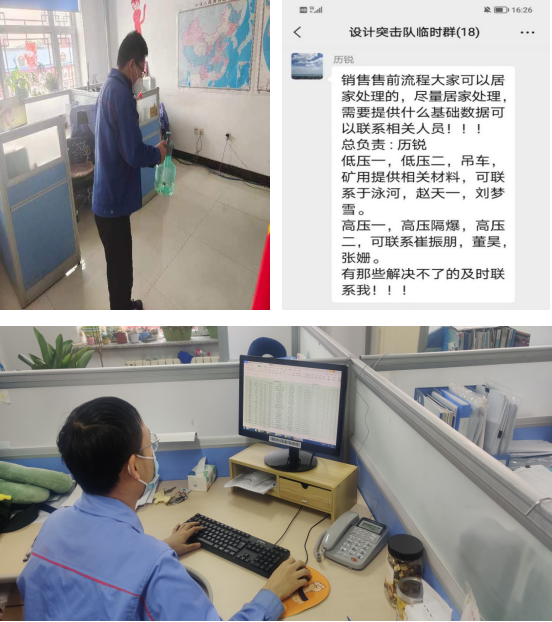 突如其来的疫情,没有打乱内贸部工作节奏,当全市进入静默管理时,销售公司副总经理、内贸部经理于本涛召集部门班子成员,第一时间召开线上会议研究对策,决定开启“线上线下联动,离厂不离线,居家不停工”工作模式,利用CRM系统的便捷优势,开展各项营销工作,保障各项重点工作有序推进,持续为用户提供优质的服务。为保证售前技术支持及售中合同的技术审核工作如期进行,内贸部技术室在疫情来临的第一时间开启居家远程办公模式,为销售技术支持争取了宝贵的时间。技术室全体人员克服困难,在居家办公期间对重点用户、重点项目及急要用户、急要项目的图纸、协议技术问题给与优先保障、优先处理。由于采用线上办公,技术室全体人员几乎全天候为网点及用户服务,对网点提出的技术申请,以最快的时间给与处理,经常早上六七点钟开始工作,晚上八九点钟还在处理急要的技术申请。对于网点人员提出技术问题,在CRM流程和电话里不易描述清楚的,技术室人员与用户、网点采用多人线上模式直接对接,及时高效的解决了用户所提出的问题,为公司争取合同提供了有力的保障。为保证疫情期间价审和重点项目标书制作等工作的有序开展,开发室通过电话和微信方式与财务部、质保部、经济运行部沟通,收集制作标书材料,与技术部门和成本管理部们沟通电机选型和报价,最终顺利完成了重点项目的投标工作。为保证用户现场急需的电机快速发出,内贸部急用户之所急,迅速组织第一批驻厂员工开展物流运输工作,克服电机存储分散、不易查找等重重困难,截止10月14日累计发运86车次、2838吨。同时,为了保障重点项目和重点产品的及时交付,内贸部与产品制造部实时对接落实重点项目、重点产品的生产进度和预计交付时间,并及时反馈给用户,将疫情防控政策和公司采取的有效应对措施向用户讲解,得到了用户的认可和赞扬。