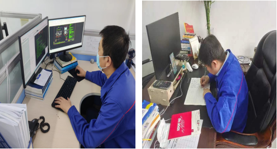 为保证公司重点合同按期交货,重点项目有序推进,设计部坚持防疫和工作两不误,迅速将驻厂员工分成高、低压两个工作小组,在负责疫情防控工作的同时,全力投入售前资料的申请工作,优先处理重点合同、重点项目的急要申请。居家员工线上办公,通过OA办公软件,远程开展技术协议审查、技术问题回复等工作。随着驻厂人数的逐渐增加,设计部成立了工作突击队,持续跟踪,全力以赴保市场、保进度。截至目前,设计部突击队已有28人驻厂复工,各设计室每天晚间统计上报当日工作进展情况,尾余工作数量,重点合同、重点项目进展情况,积极推进项目建设,全过程跟踪重点产品生产制造。确定了主氦风机试验台架建设部分最终施工方案并有序推进;跟踪重点产品以及重点核电项目的装配进度,解决了制造过程中的技术问题;完成了重点用户急要高压方箱电机技术资料下发和重点产品线上视频技术交流等工作。