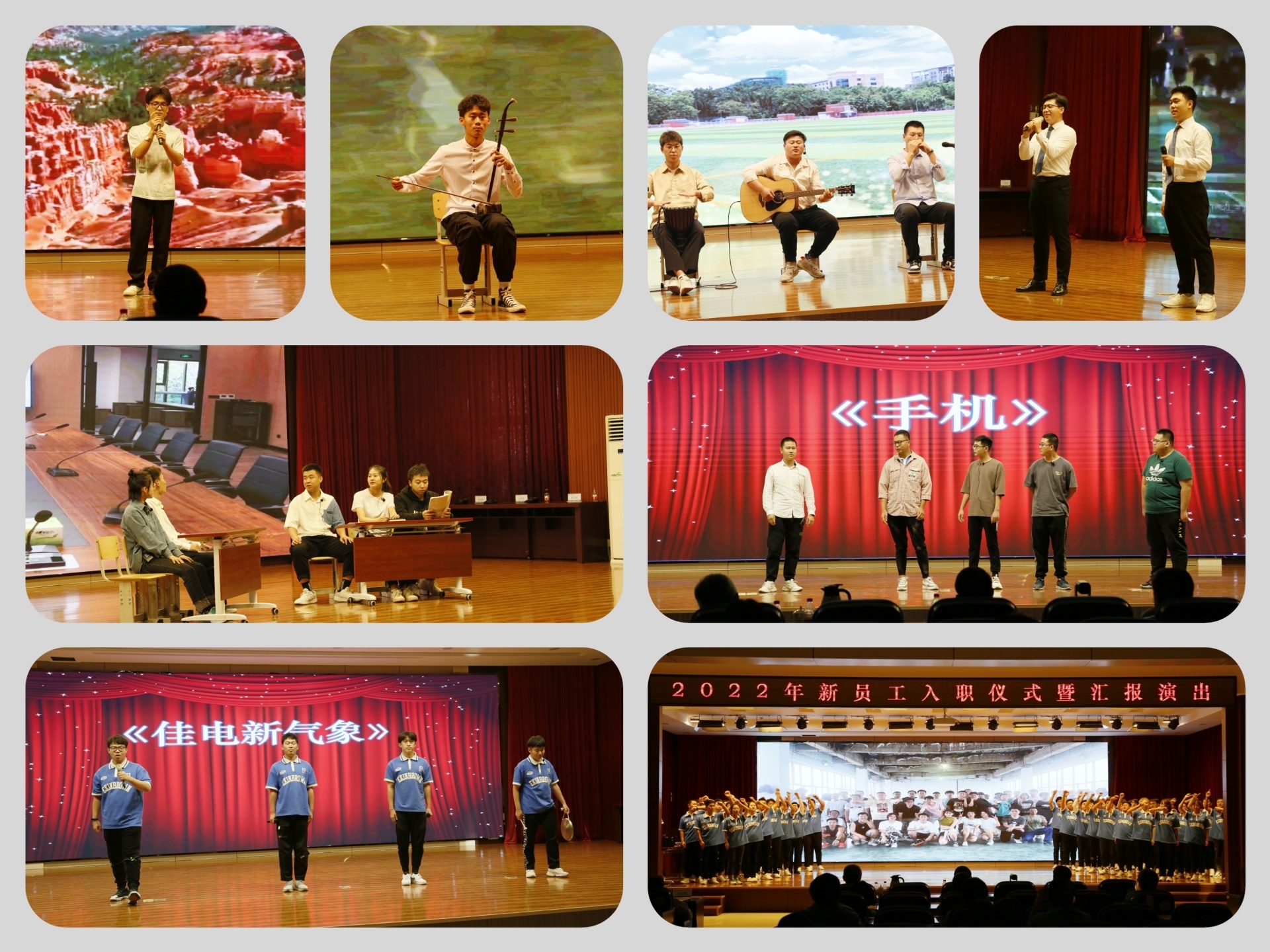 入职仪式结束后,新员工奉献了一场自编自导的精彩演出,有情深意切的歌曲串烧,有激情洋溢的乐器演奏,有幽默风趣的相声曲艺,还有巧妙绝伦的悠悠球表演。最后大家以一首《相亲相爱》表达了对新环境和新同事的热爱。