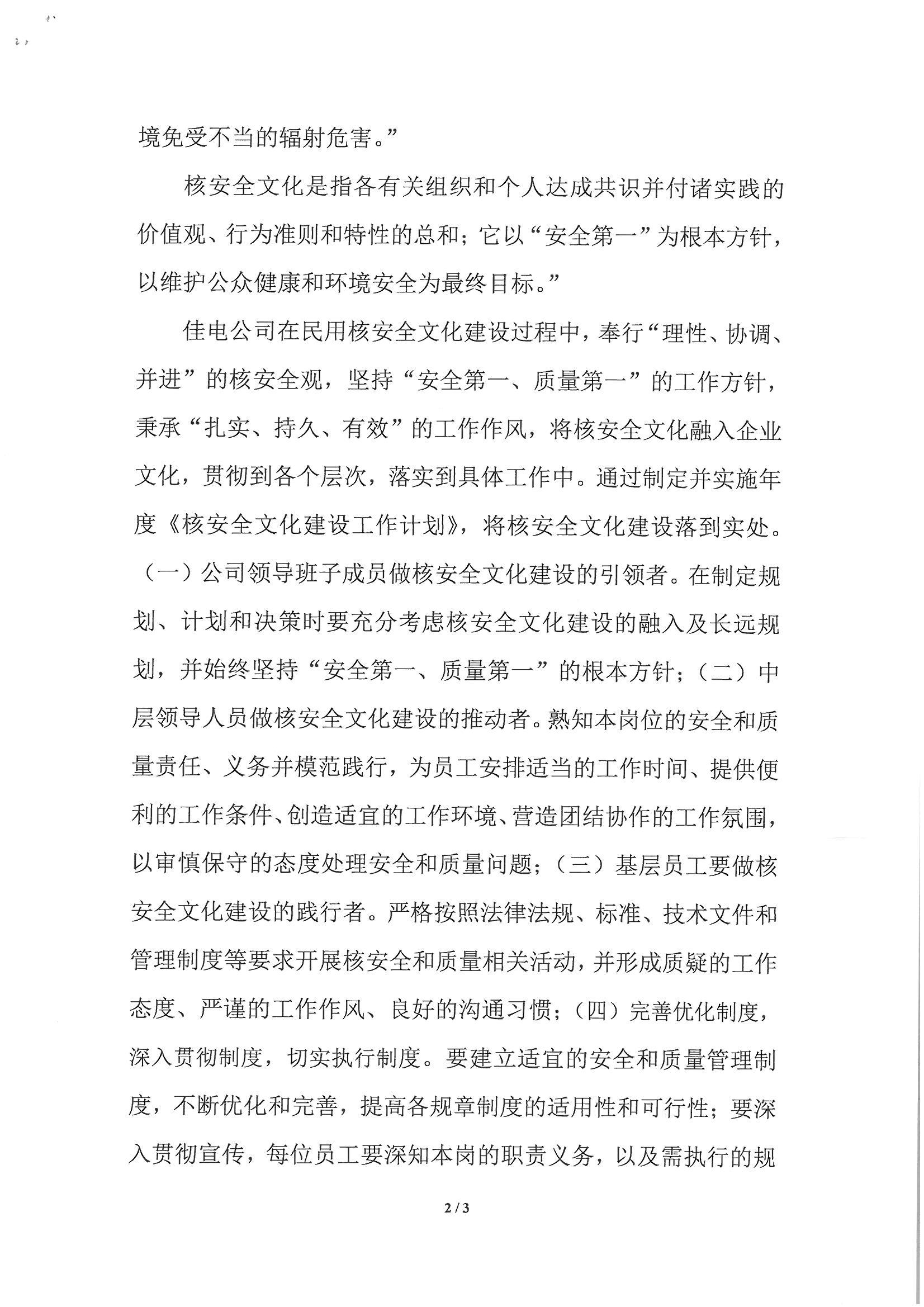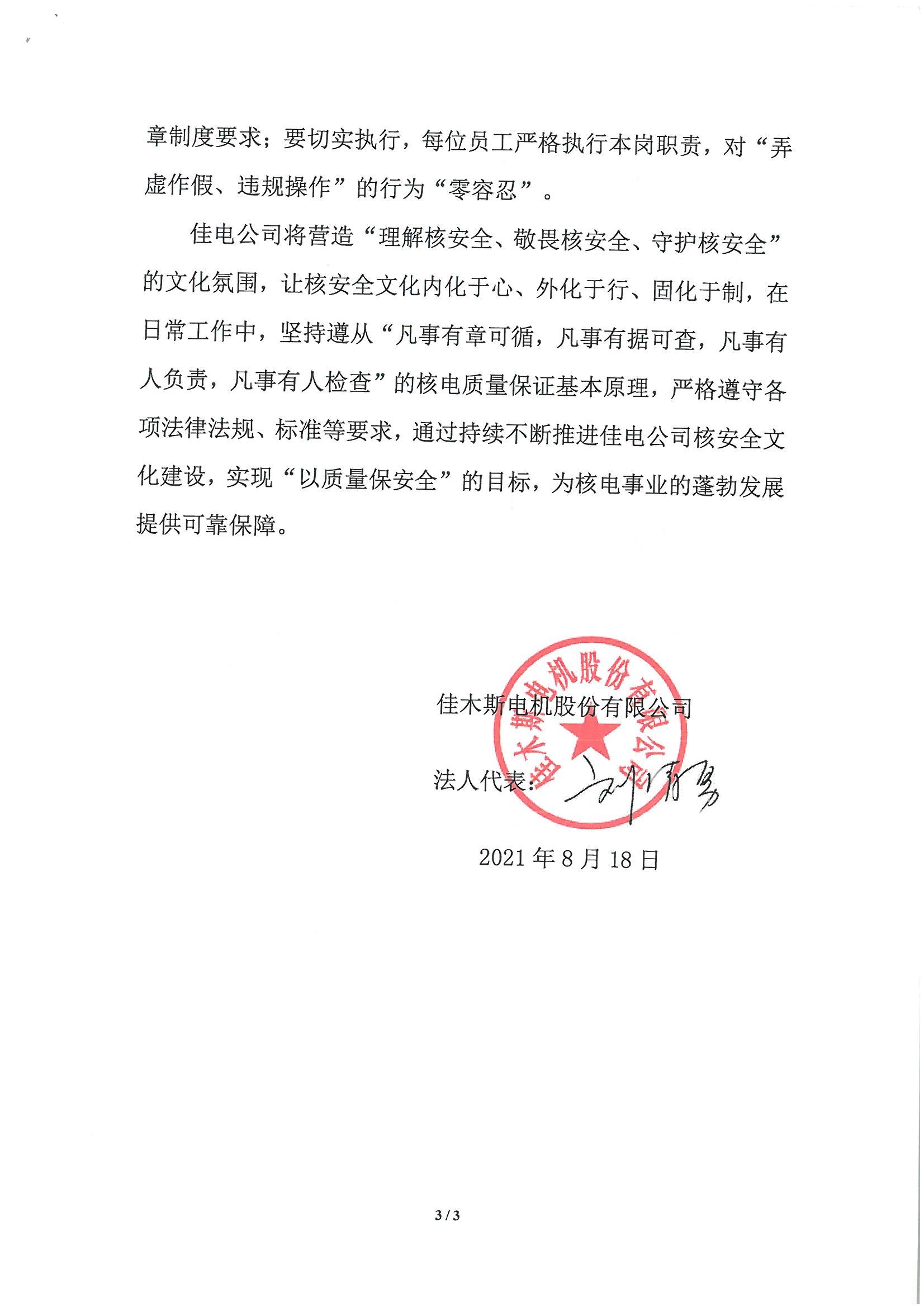 《佳木斯电机股份有限公司核安全文化政策声明》