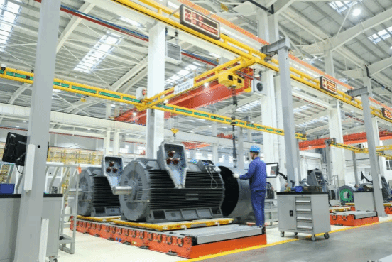 与此同时,2138cn太阳集团城还不遗余力地推进数字化转型工作,累计投资达1.8亿元,建成全国首个高压电机数字化车间。“投产运行以来,车间生产效率提升35%,产能提升56%。”车间负责人冯建国介绍说。